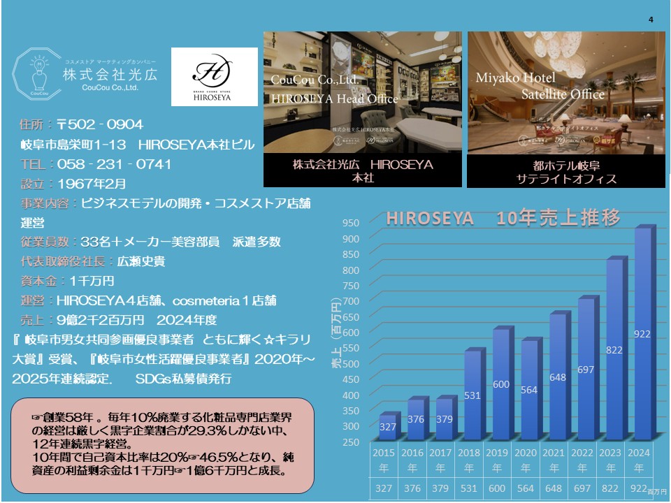 家業の化粧品専門店「HIROSEYA」を再建し、